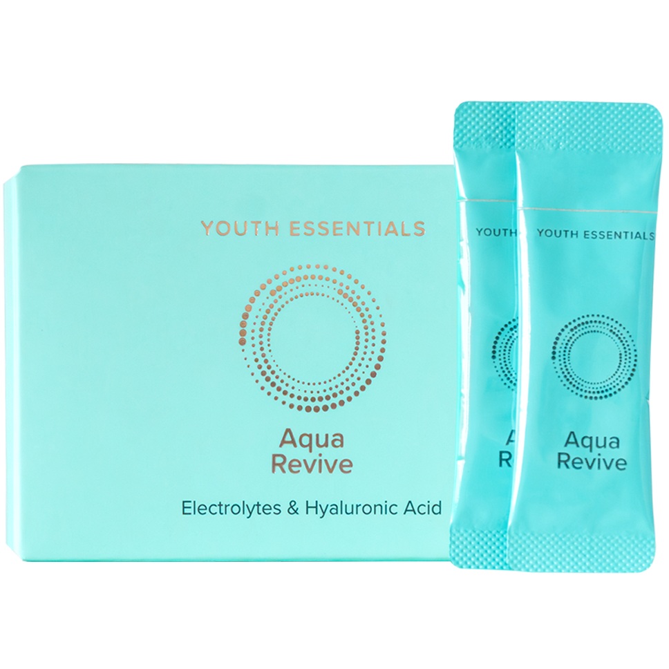 Aqua Revive este un supliment pe bază de electroliți, cu gust delicios de afine, fără zahăr, ce susține frumusețea din interior. Formulat științific pentru a optimiza hidratarea, acesta conduce apa mai rapid și mai eficient către zonele necesare, asigurând o hidratare profundă chiar și cu un consum redus de lichide.