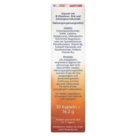 Ultima actualizare a informatiilor de prezentare pentru Ginseng + Vitamina B + Zinc, 30 capsule, Doppelherz a fost efectuata la data de 17-04-2026.  |  Raporteaza Descriere Gresita