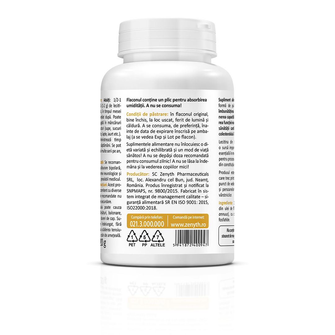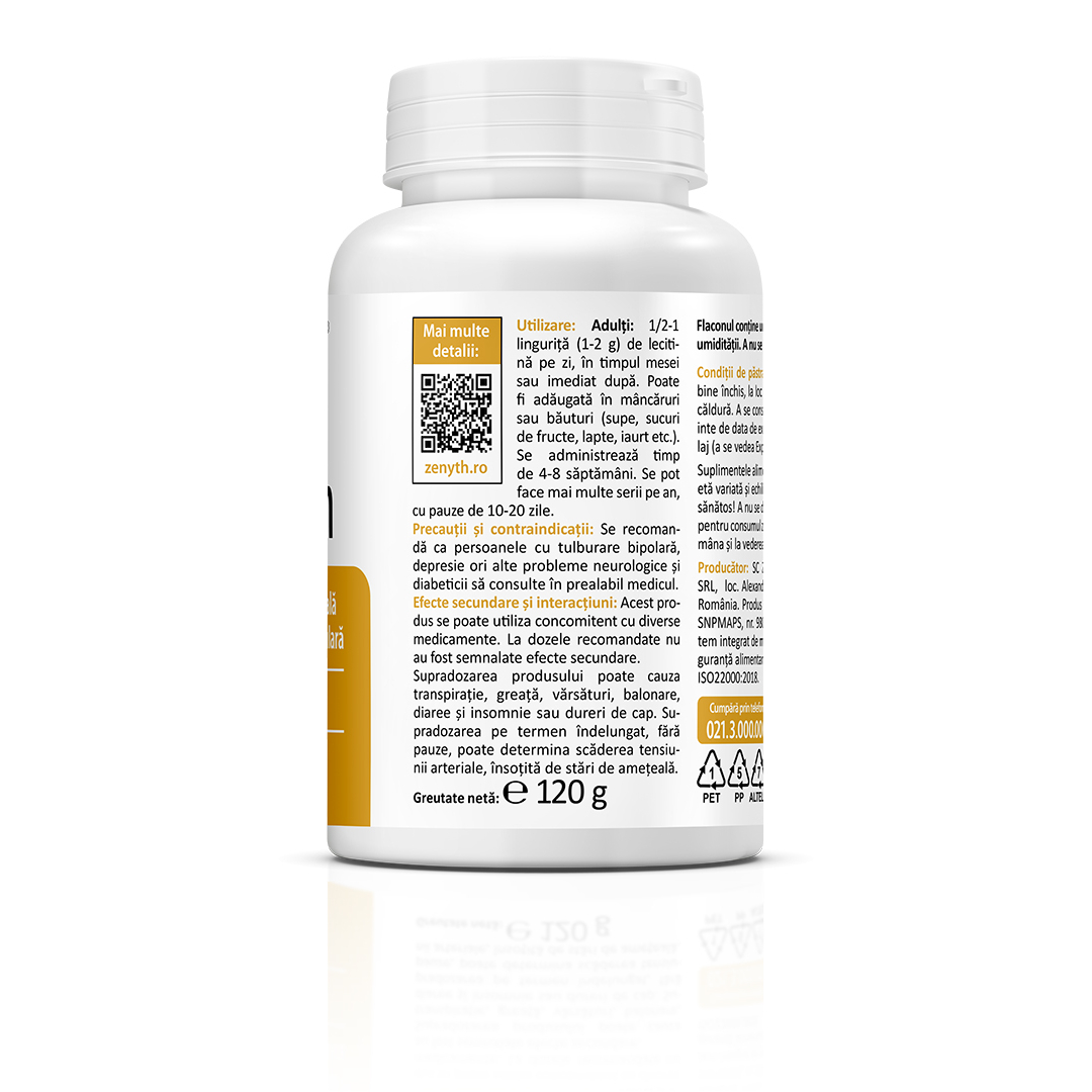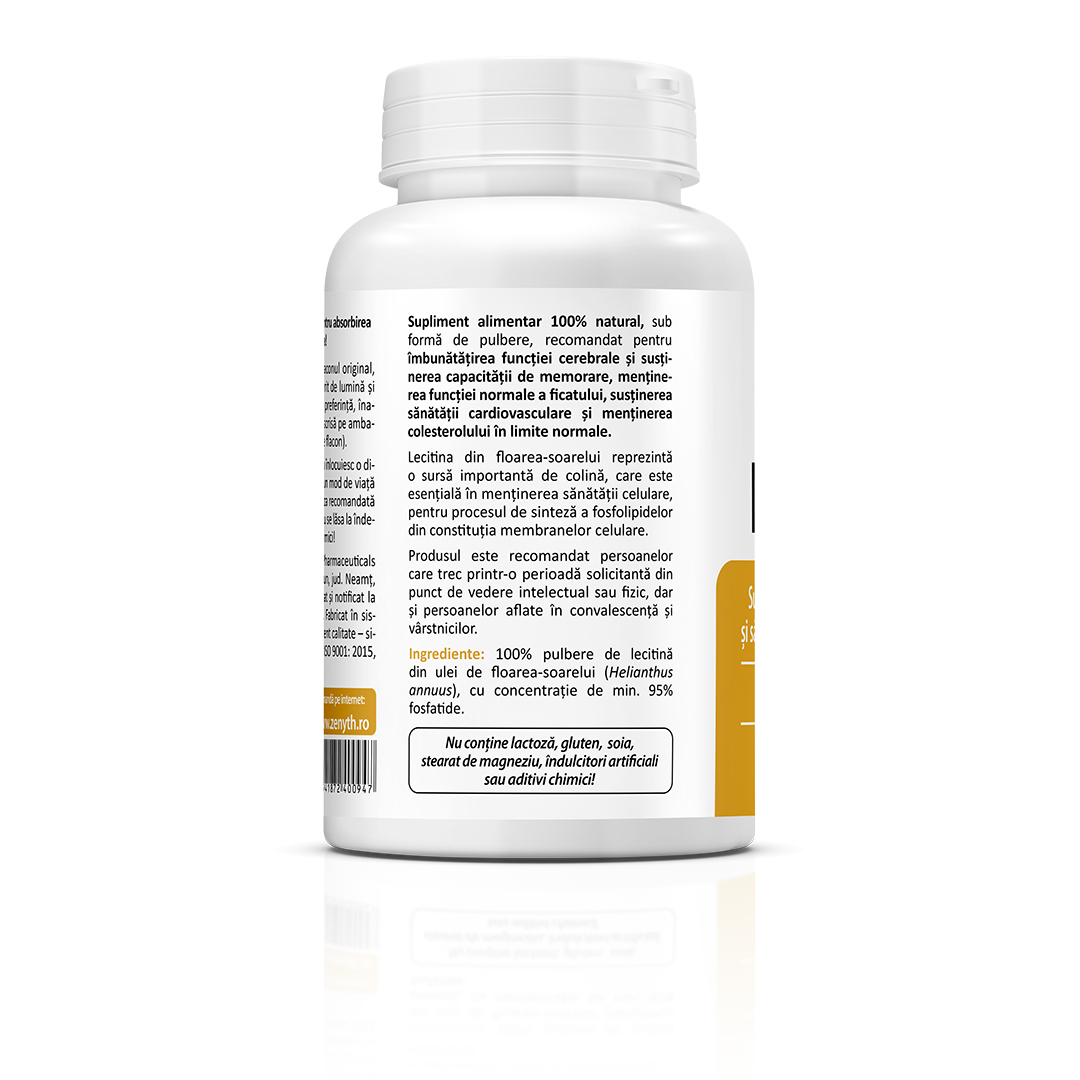 Supliment alimentar 100% natural, sub formă de pulbere de lecitină din floarea-soarelui, destinat susținerii funcției cerebrale, capacității de memorare și menținerii funcțiilor normale ale organismului.