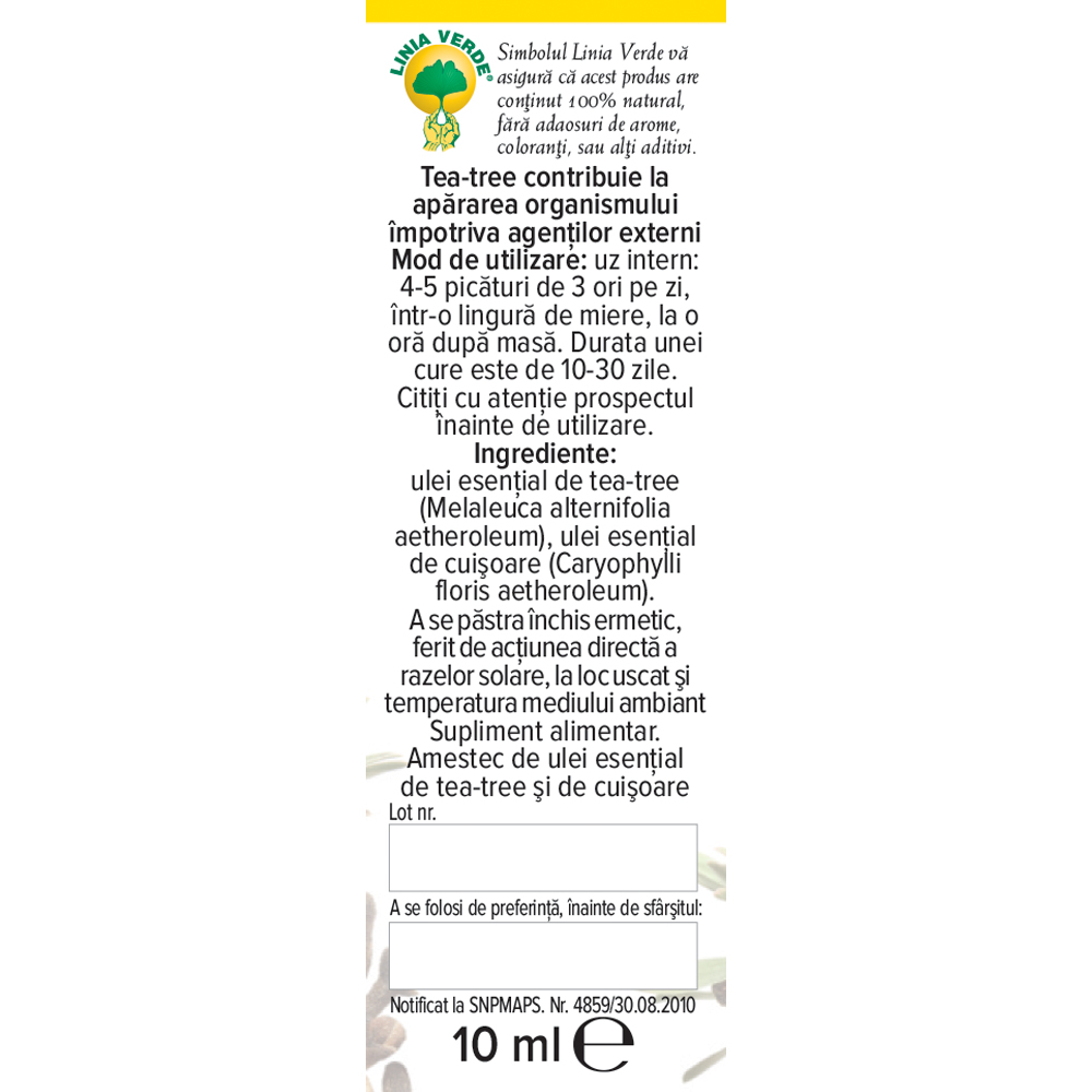 ulei esential de tea-tree (Melaleuca alternifolia aetheroleum), ulei esential de cuisoare (Caryophylli floris aetheroleum)