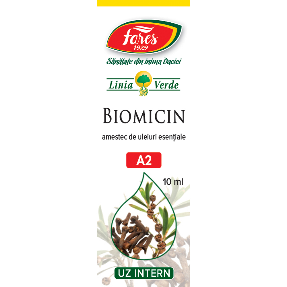 Biomicin este un supliment alimentar pe baza de uleiuri esentiale, formulat pentru sustinerea echilibrului natural al organismului si a unei igiene interne corecte. Contine ulei esential de tea-tree si cuisoare, ingrediente cunoscute pentru proprietatile lor traditionale.
