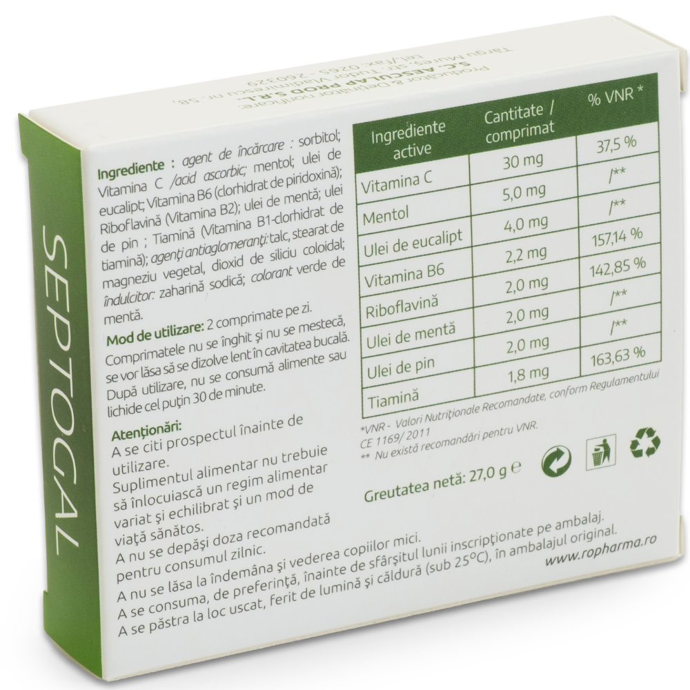Septosal este un supliment alimentar sub forma de comprimate care se dizolva lent in cavitatea bucala.