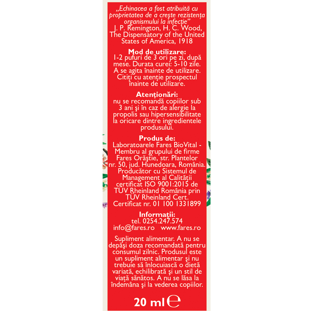 Nu se recomandă copiilor sub 3 ani și în caz de alergie la propolis sau hipersensibilitate la oricare dintre ingrediente. A nu se depăși doza recomandată pentru consumul zilnic. Produsul este un supliment alimentar și nu trebuie să înlocuiască o dietă variată, echilibrată și un stil de viață sănătos. A se păstra la loc uscat, la temperatura mediului ambiant și a nu se lăsa la îndemâna și la vederea copiilor.