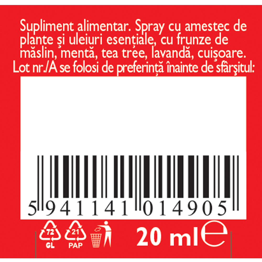 Produsul este un spray, realizat dintr-un amestec de extracte de plante și uleiuri esențiale pure.