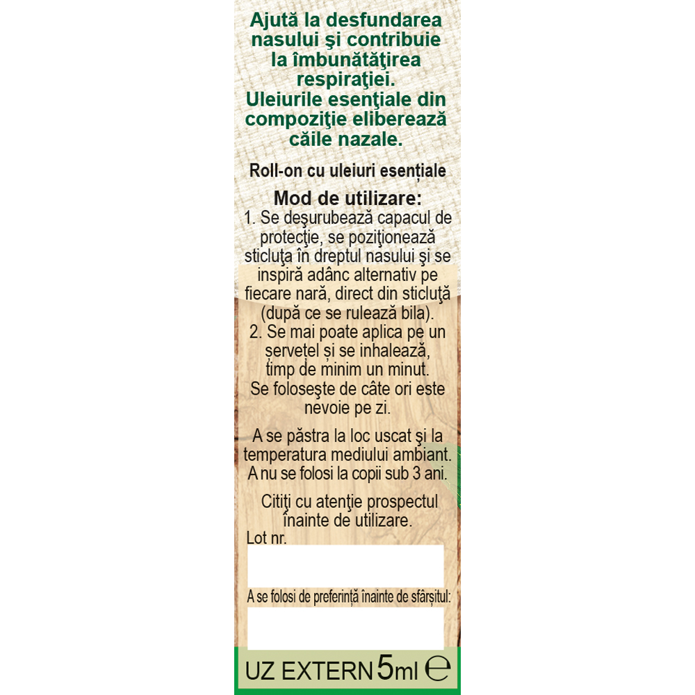 Produsul este un roll-on cu o combinație de uleiuri esențiale. Este destinat exclusiv pentru uz extern.
