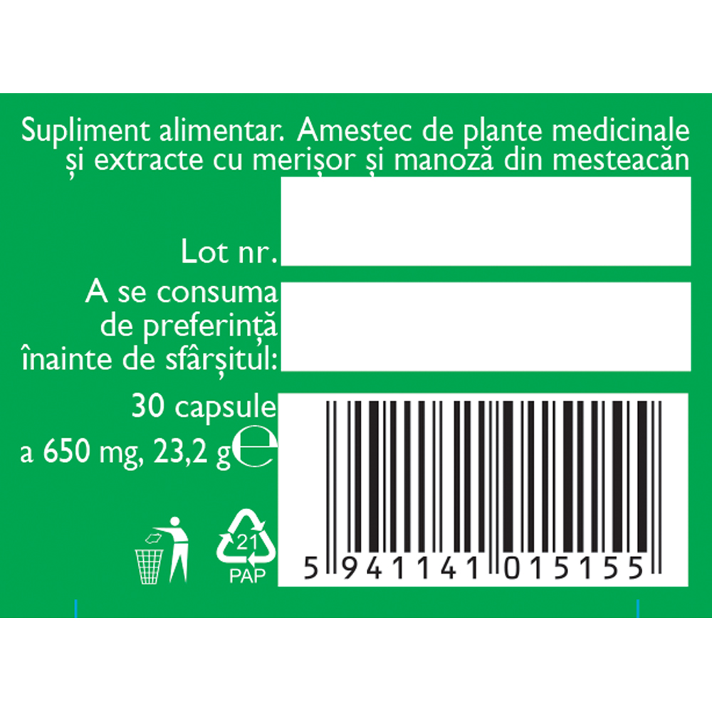 Durata unei cure este de 10 zile. Cura se poate continua la nevoie pâna la 6 săptămâni, cu 1-2 capsule/zi.