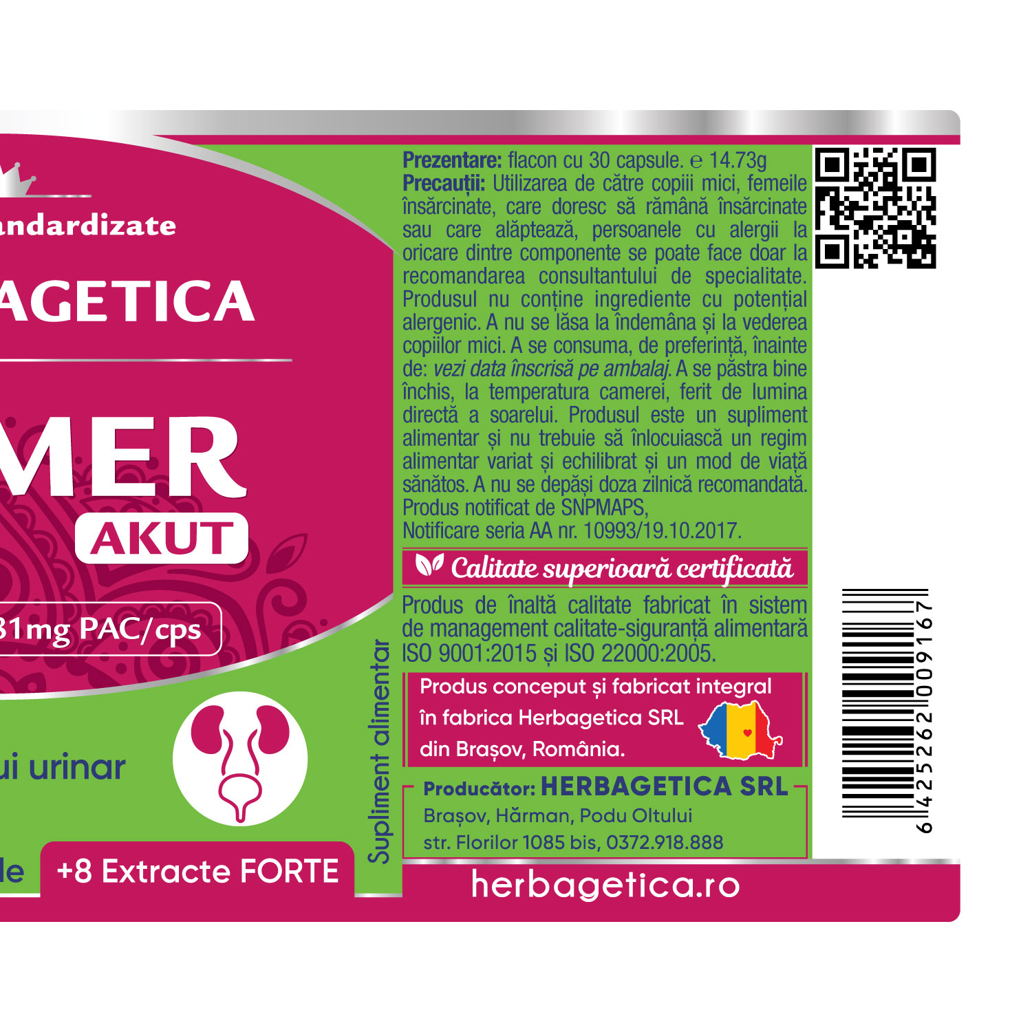 Produs de înaltă calitate fabricat în sistem de management calitate-siguranță alimentară ISO 9001:2015 și ISO 22000:2005.