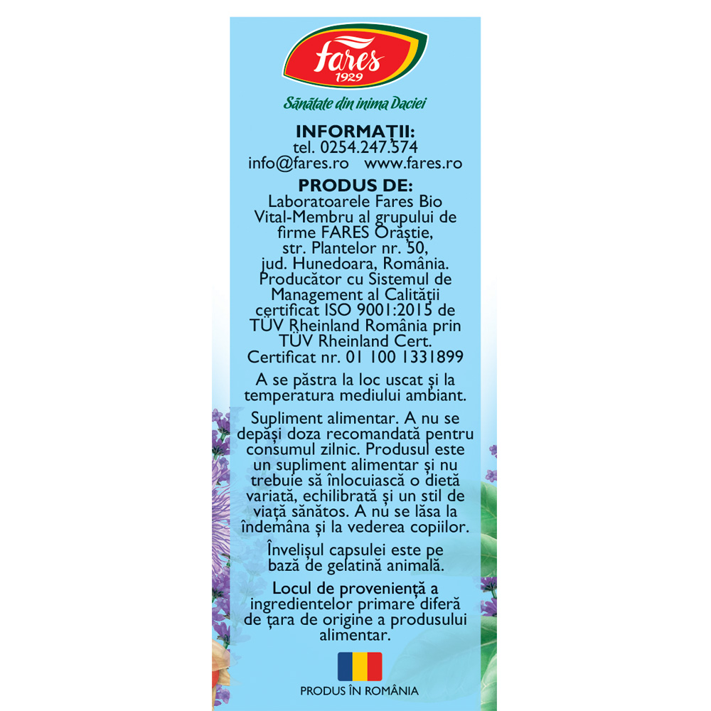 Suplimentele alimentare nu înlocuiesc o dietă variată și echilibrată și un stil de viață sănătos.