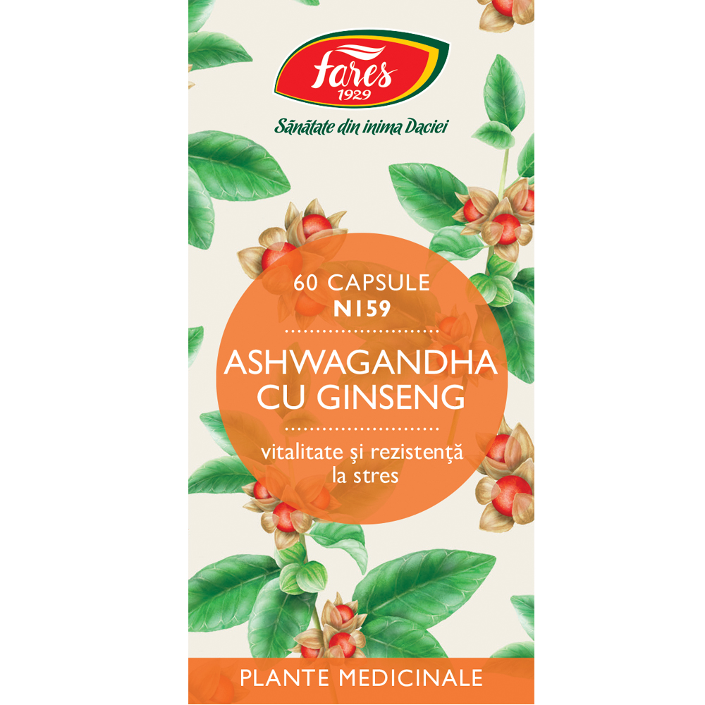Suplimentul alimentar Ashwagandha cu Ginseng de la Fares 1929 este un produs în capsule, formulat cu extracte din plante medicinale cunoscute pentru proprietățile lor de susținere a organismului. Este conceput pentru a contribui la vitalitate și rezistența la stres.