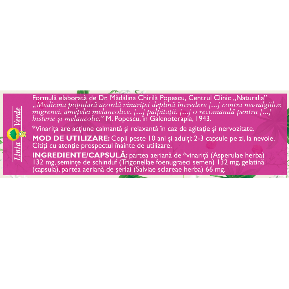 - Vinariţă (Asperulae herba) 132 mg.