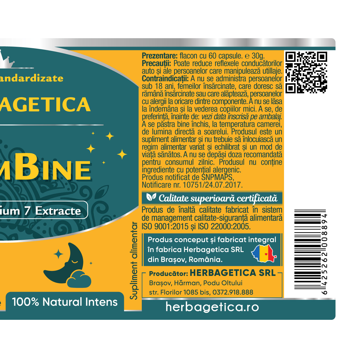 Produs de înaltă calitate fabricat în sistem de management calitate-siguranță alimentară ISO 9001:2015 și ISO 22000:2005.