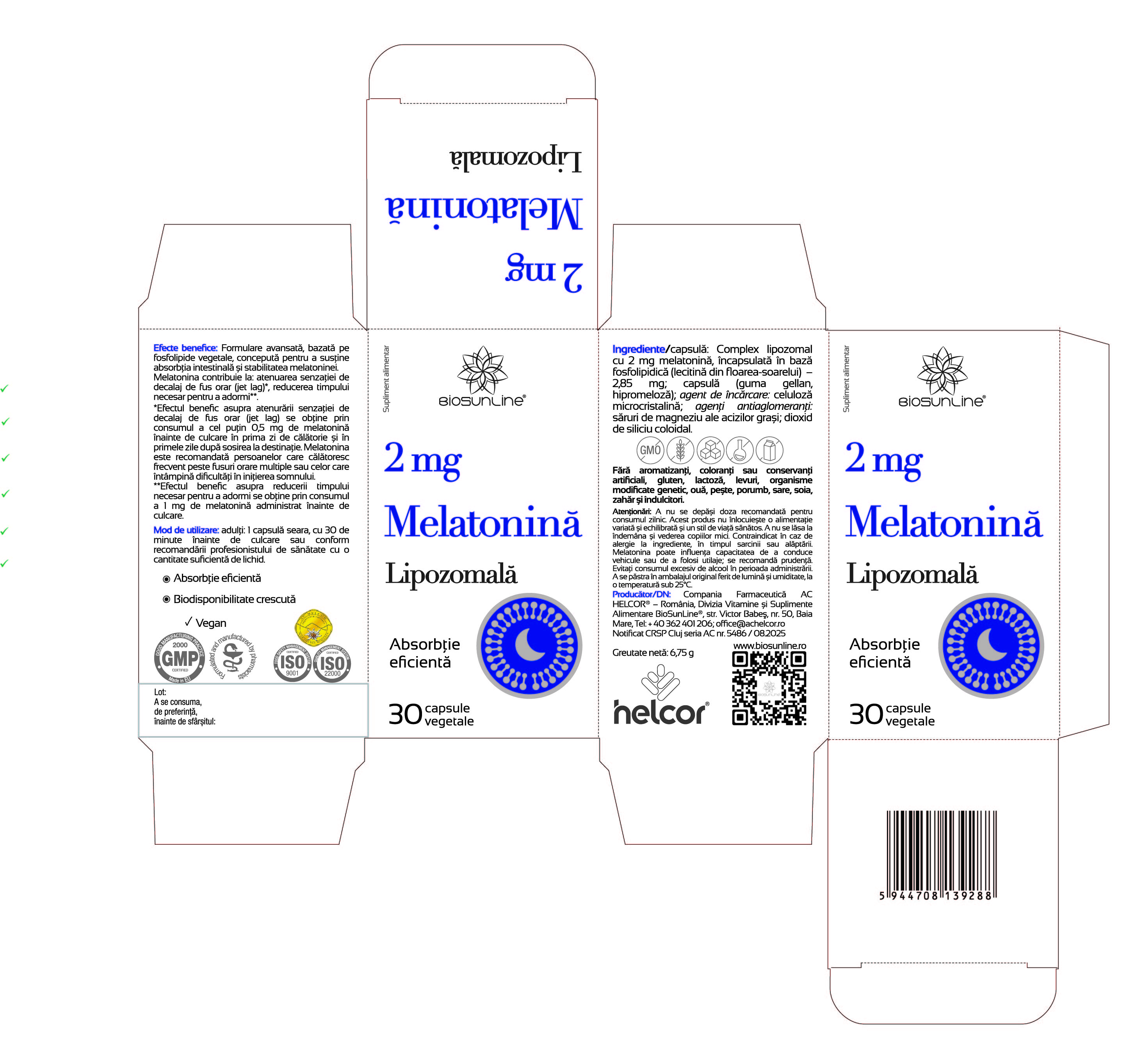 Melatonina Lipozomala, 2 mg, 30 capsule vegetale, BioSunLine