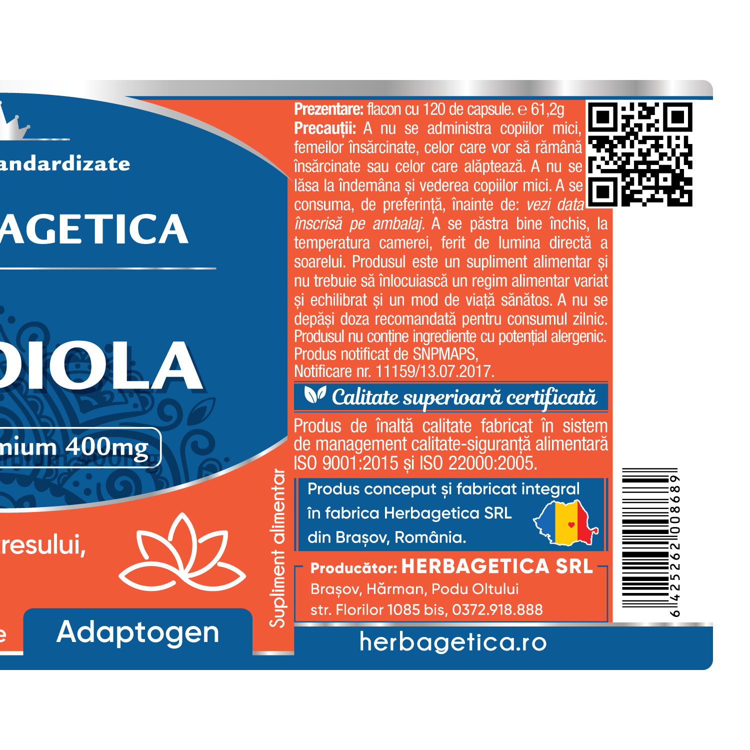 Extract Rhodiola rosea standardizat 3% Rozavine și 1% Salidrozide 400mg;