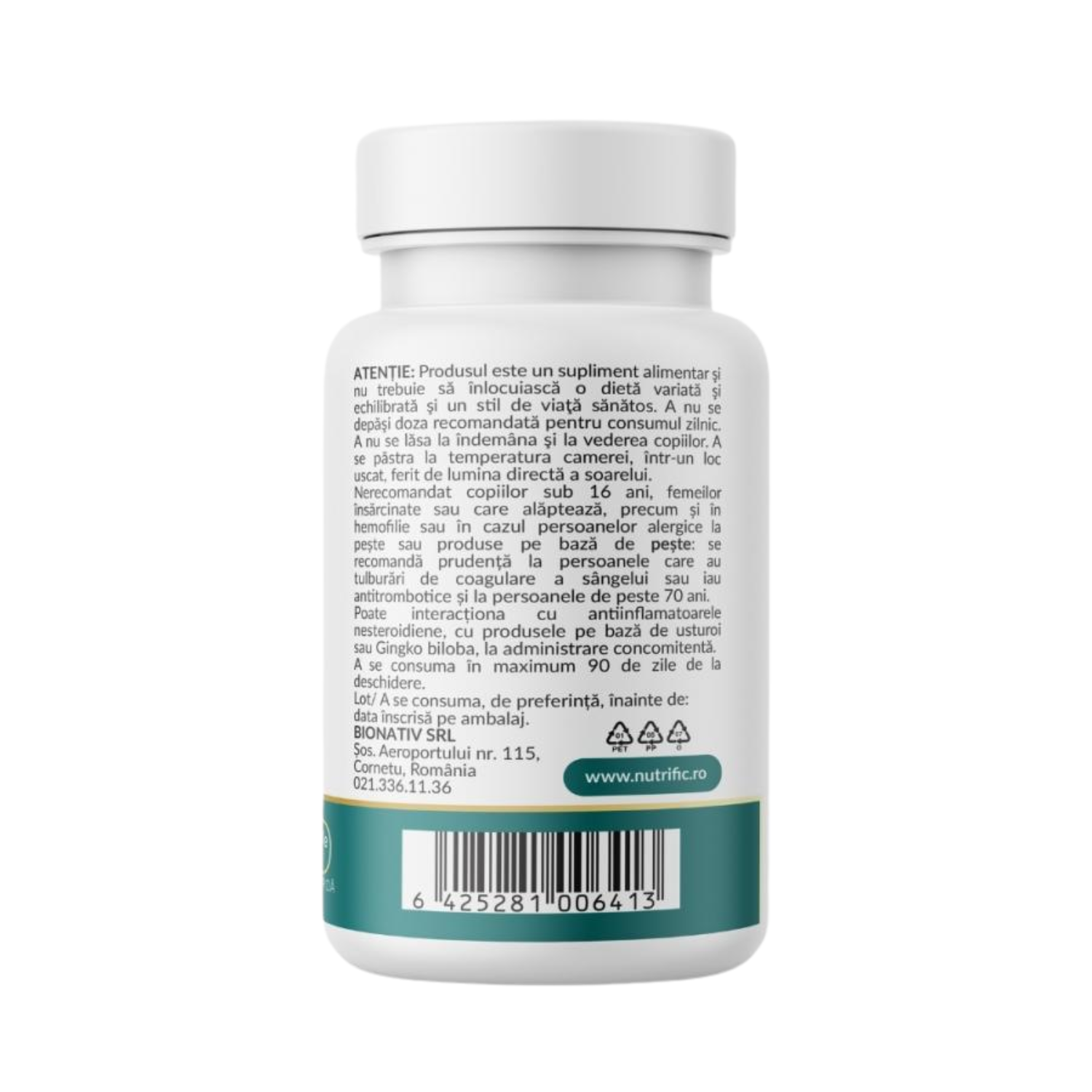 Conform etichetei produsului, Omega 3 1000 mg de la Nutrific nu este recomandat copiilor sub 16 ani, femeilor însărcinate sau care alăptează precum și în hemofilie sau în cazul persoanelor alergice la pește sau produse pe bază de pește. Se recomandă prudență la persoanele care au tulburări de coagulare a sângelui sau iau antitrombotice și la persoanele de peste 70 de ani. Poate interacționa cu antiinflamatoarele nesteroidiene, cu produsele pe bază de usturoi sau Gingko biloba, la administrarea concomitentă.