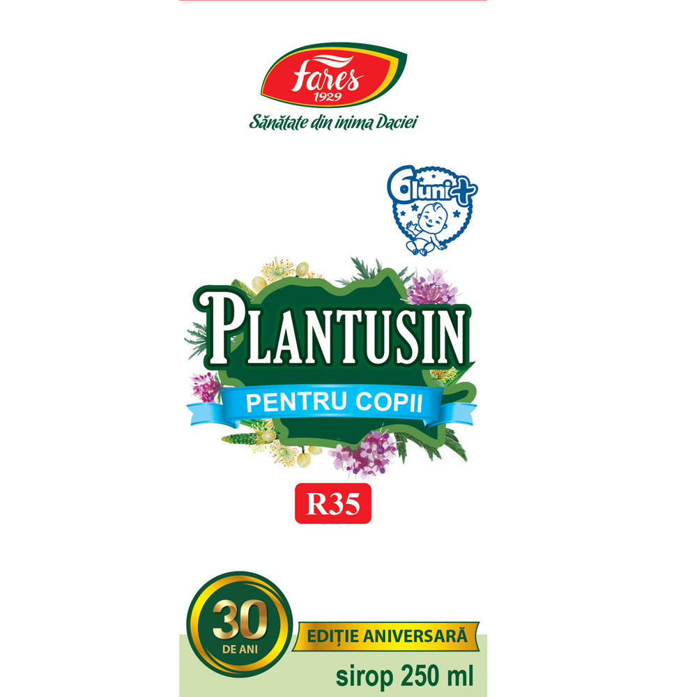 Un sirop natural din plante medicinale, fără conservanți, îndulcit cu fructoză. Este o ediție aniversară de 30 de ani a gamei Plantusin.