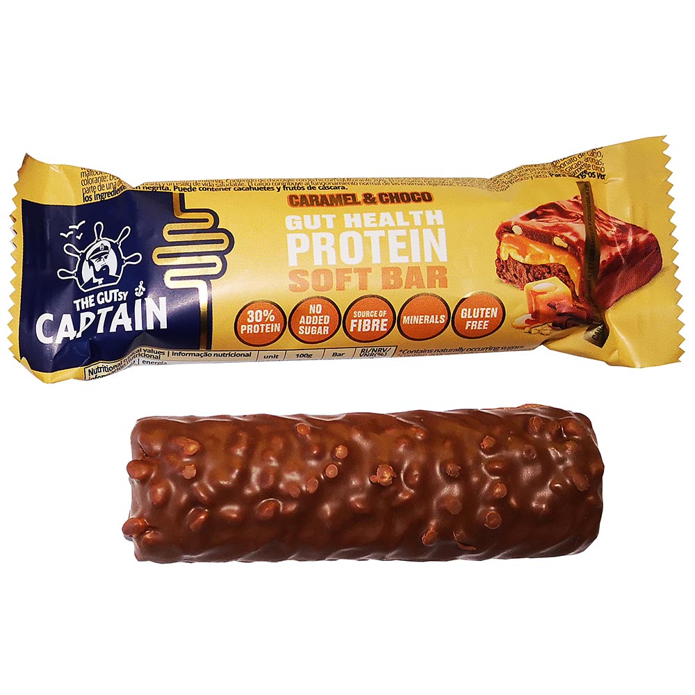 Baton proteic cu aroma de caramel, cu ciocolata cu lapte, cu indulcitor. Continut ridicat de proteine. Continut de ciocolata cu lapte, cu indulcitor, 20%. Consumul excesiv poate avea efecte laxative. Savurati zilnic, ca parte a unei diete echilibrate si a unui stil de viata sanatos. Calciul suporta functionarea normala a enzimelor digestive. Fara zahar adaugat. Contine zaharuri prezente in mod natural. Sursa de fibre