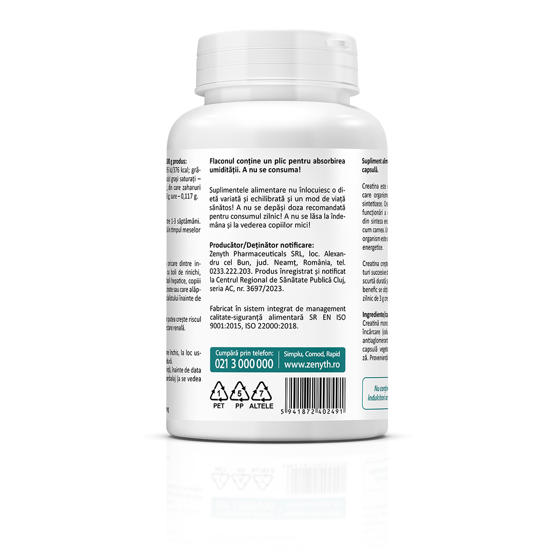 Supliment alimentar cu creatină monohidrat, 1000 mg/capsulă.