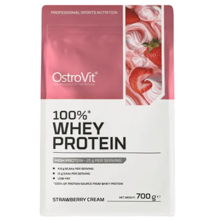 OstroVit 100% Whey Protein este un supliment alimentar sub formă de pulbere, care furnizează concentrat de proteine din zer cu un conținut de până la 70% proteine de înaltă calitate. Produsul este dedicat sportivilor și persoanelor active care doresc să își completeze aportul zilnic de proteine.