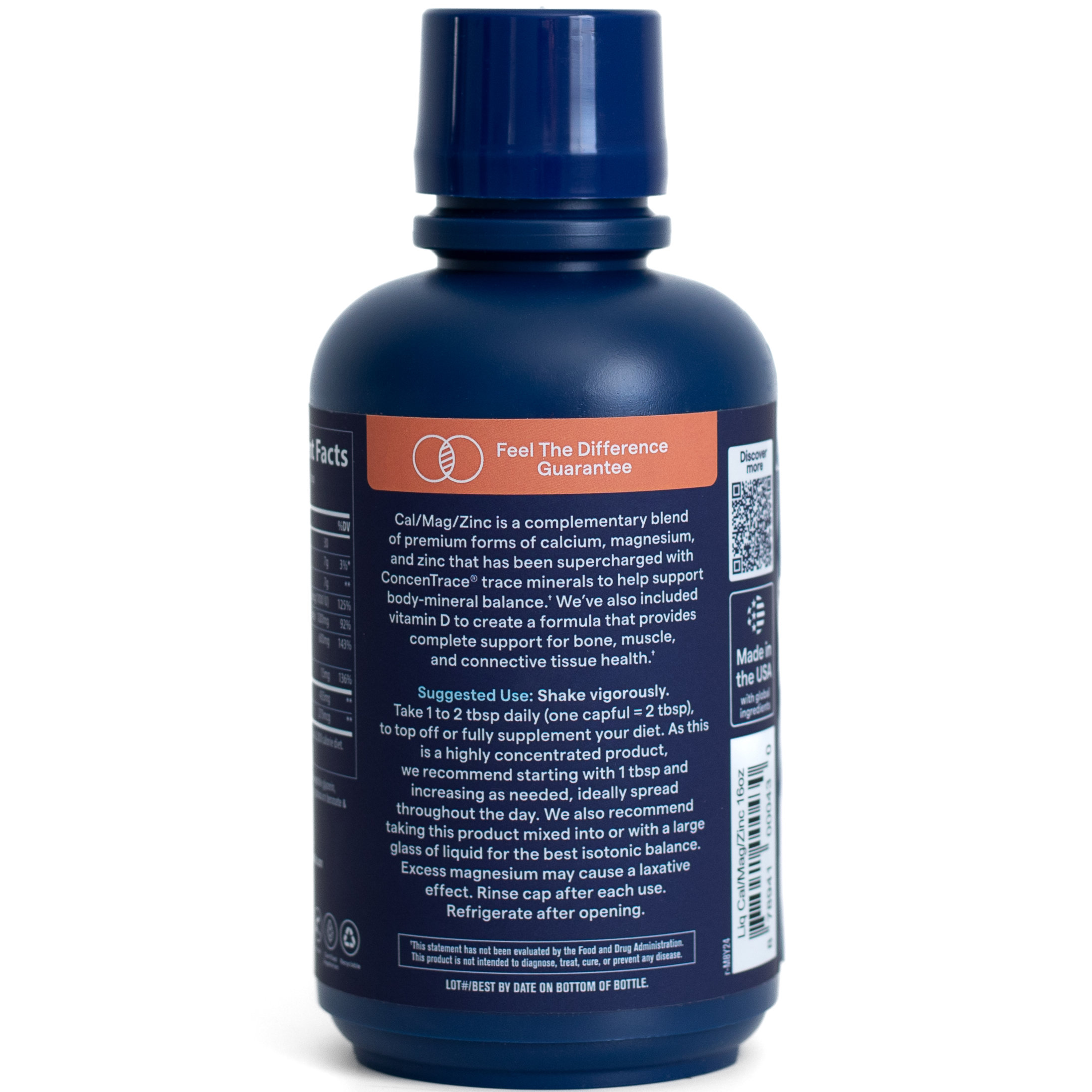 apă purificată, glicerină vegetală, magneziu (citrat), zinc (gluconat de zinc), fosfor (săruri de calciu ale acidului ortofosforic), calciu (citrat/gluconat/săruri de calciu ale acidului ortofosforic), vitamina d3 (colecalciferol), bor, fier, cloruri, sodiu, aromă naturală de ananas și cocos, gumă xantan, benzoat de potasiu, sorbat de potasiu, acid citric, acid fosforic, urme a peste 72 minerale în stare ionică naturală provenite din great salt lake, utah, sua.
