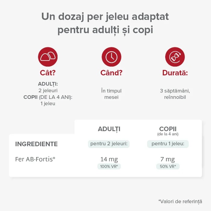 Copii (începând de la 4 ani): 1 jeleu/zi