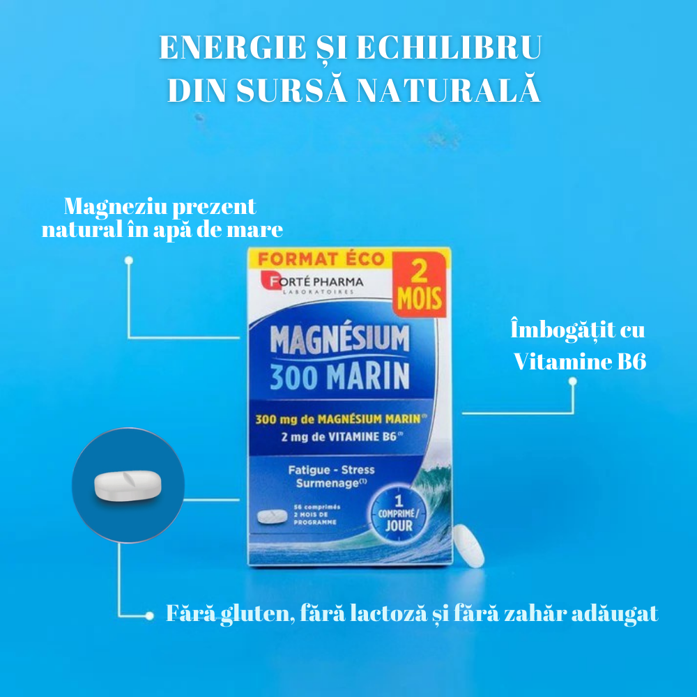 Magneziu 300 Marin Forte Pharma se recomandă încă de la apariția primelor semne de deficit.