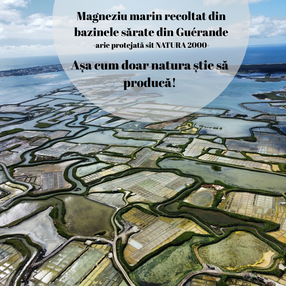 AlgoSource reușește să reducă conținutul de sodiu din magneziul marin extras din bazinele sărate din Guérande (arie protejată Natura 2000), unde salinierii recoltează renumita sare celtică. Lăzurile cu evaporare salină, denumite și „ape mame”, reprezintă o sursă extraordinară de minerale și oligoelemente într-o formă lichidă: magneziu (Mg²⁺), calciu, fosfor, sodiu și potasiu, perfect solubile și ușor de asimilat – așa cum doar natura știe să le producă!