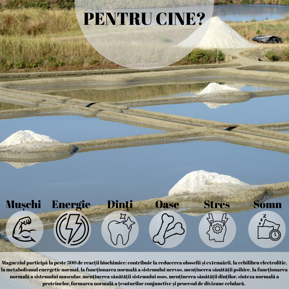 Magneziul participă la peste 300 de reacții biochimice în organism și acționează ca un adevărat regulator natural: susține funcționarea optimă a mușchilor și a sistemului cardiovascular, contribuie la sănătatea oaselor și a dinților, sprijină sinteza proteinelor și producerea energiei, îmbunătățește concentrarea și ajută la reglarea stresului și a somnului.