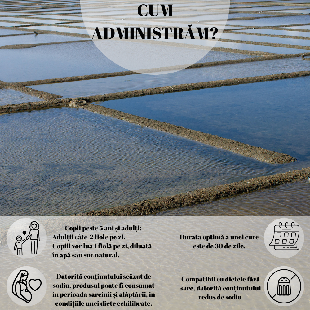 Mod de utilizare: copii peste 5 ani și adulți: adulți câte 2 fiole pe zi, copiii o fiolă pe zi, diluată în apă sau suc natural; durata optimă a unei cure este de 30 de zile, cura se poate relua la nevoie. Datorită conținutului scăzut de sodiu, produsul poate fi consumat în perioada sarcinii și alăptării, în condițiile unei diete echilibrate