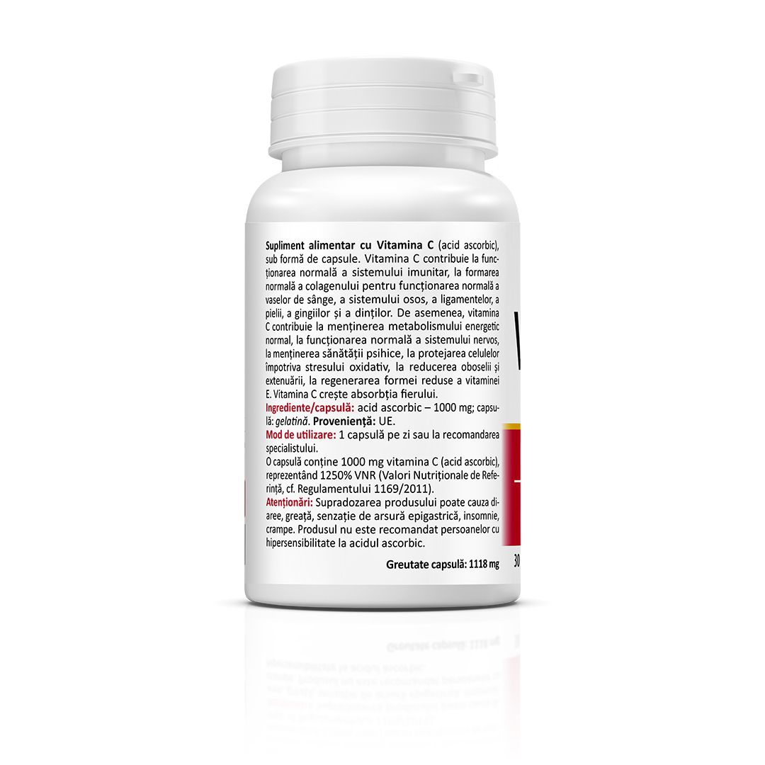 Supliment alimentar cu vitamina C (acid ascorbic), sub forma de capsule, destinat completarii aportului zilnic de vitamina C.
