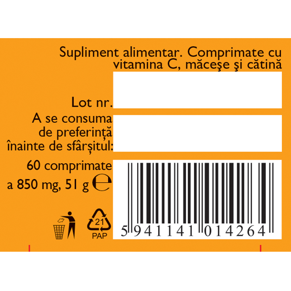 Vitamina C 200 cu măceșe și cătină este un supliment alimentar natural, care contribuie la întărirea sistemului imunitar și combaterea oboselii.
