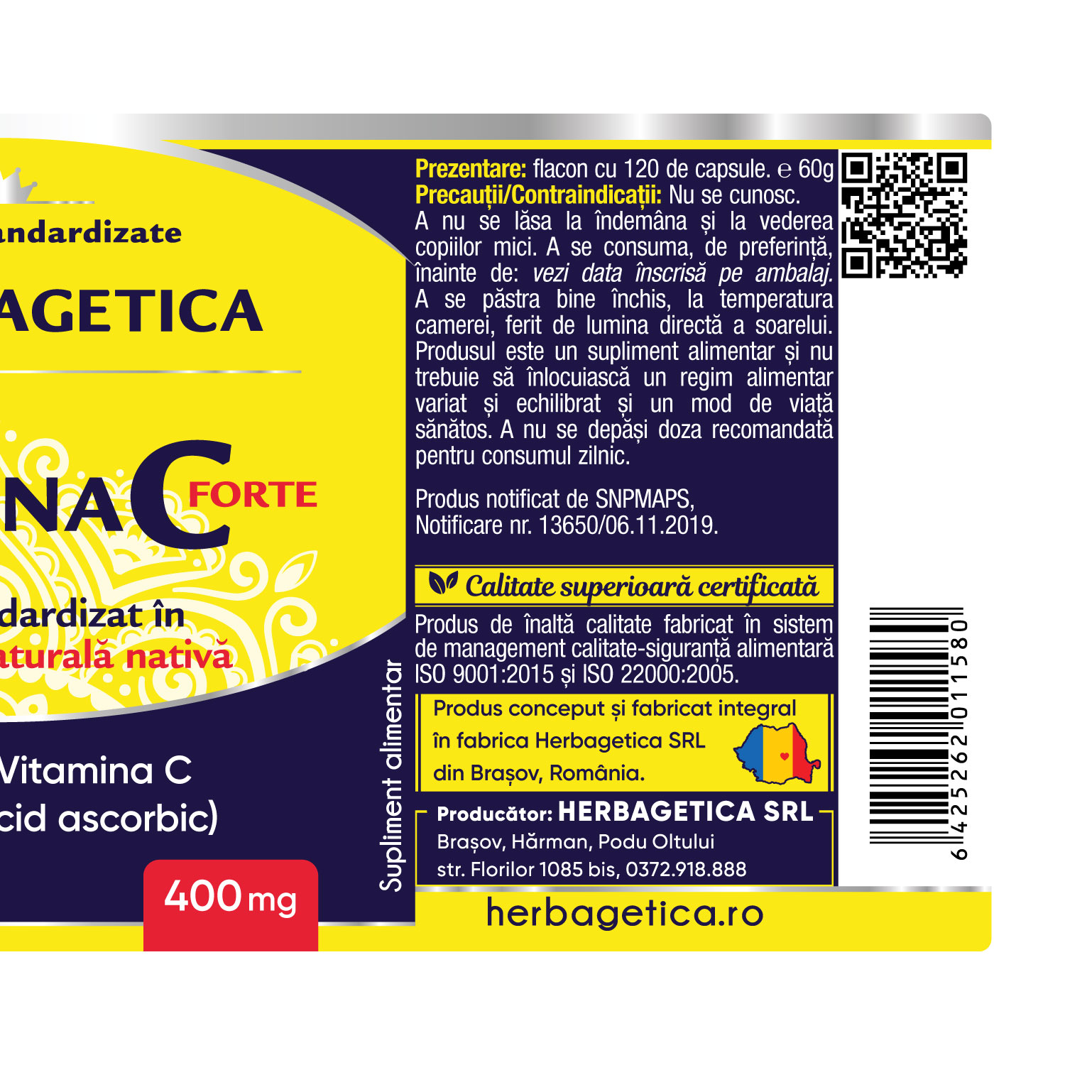 Produs de înaltă calitate fabricat în sistem de management calitate-siguranță alimentară ISO 9001:2015 și ISO 22000:2005.