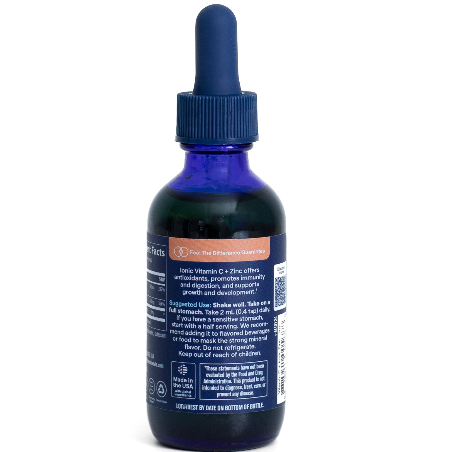 Supliment alimentar lichid cu vitamina C și zinc, îmbogățit cu urme de oligominerale ionice provenite din Great Salt Lake, Utah, SUA. Formula ionică lichidă este concepută pentru absorbție rapidă.