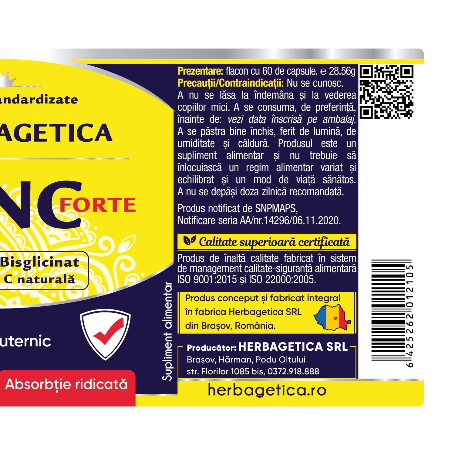 Produs de înaltă calitate fabricat în sistem de management calitate-siguranță alimentară ISO 9001:2015 și ISO 22000:2005.