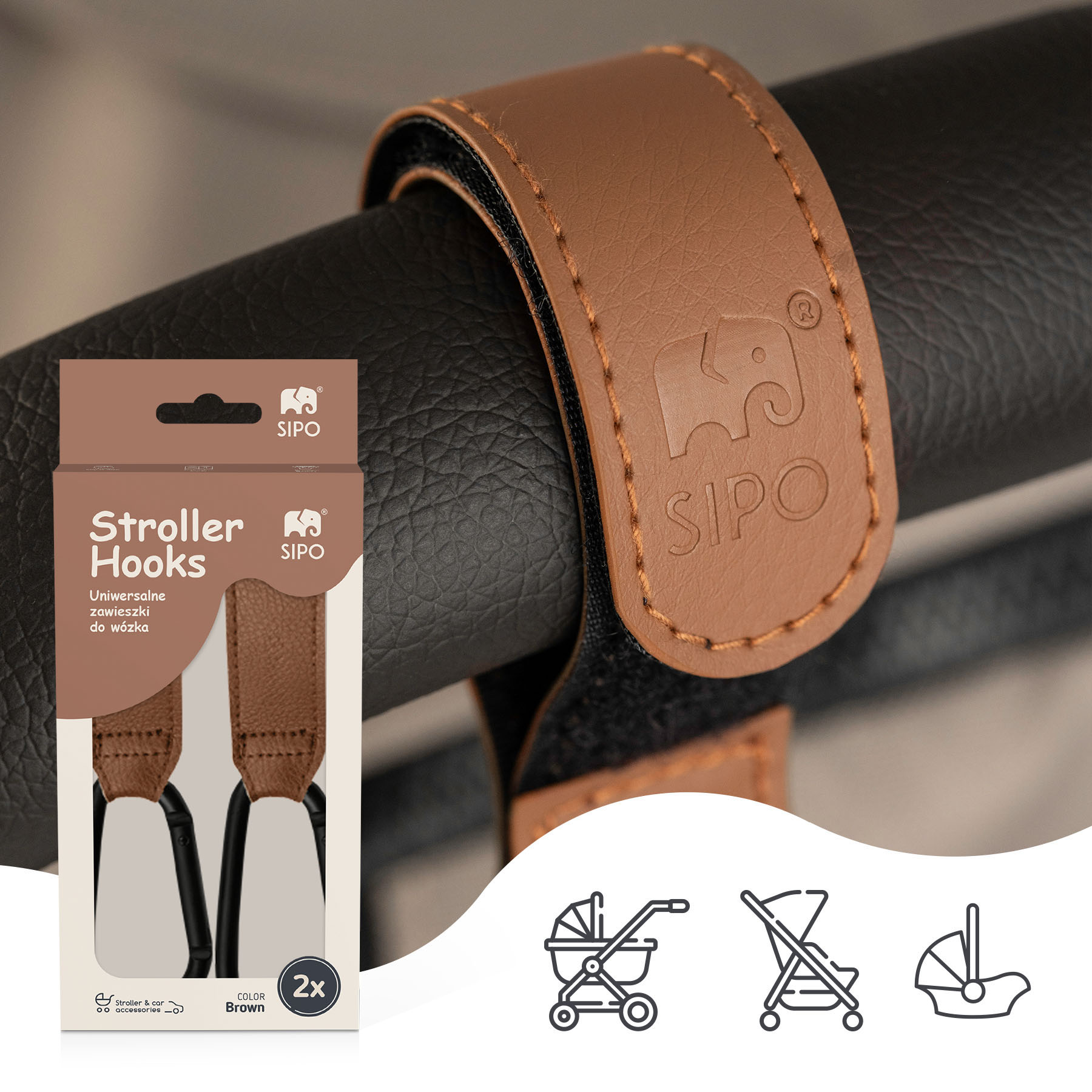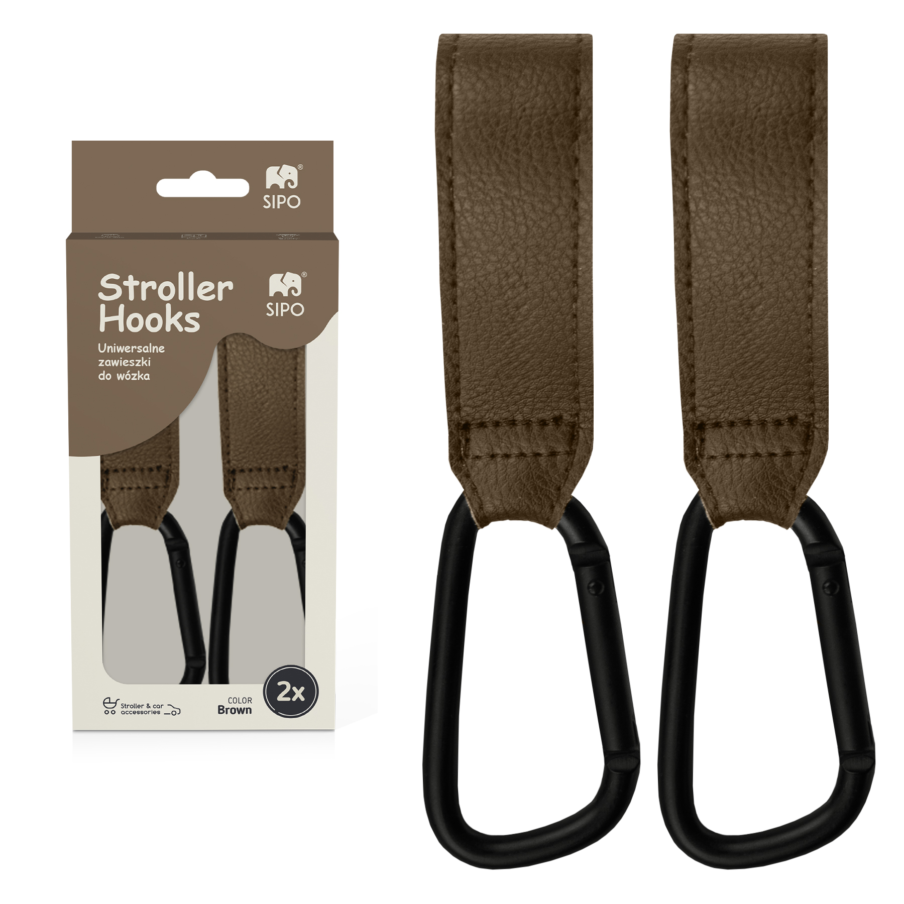 Carlige universale din piele ecologica pentru carucior, Maro, 2 bucati, Sipo [5904717761641]