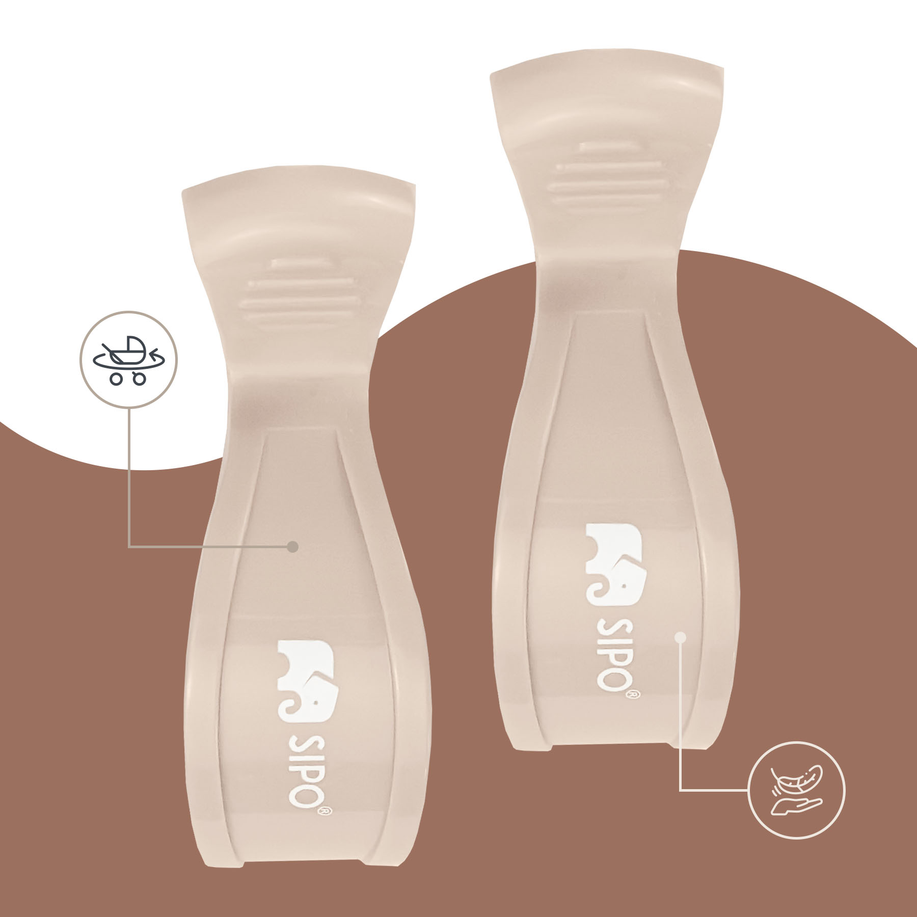 Clemele de montare SIPO sunt un accesoriu practic și versatil, conceput pentru utilizarea zilnică împreună cu articole destinate copiilor. Cu un mecanism de prindere cu arc și design compact, acestea permit atașarea rapidă și sigură a diferitelor obiecte – pânze museline, păturici, jucării ușoare sau huse de soare.