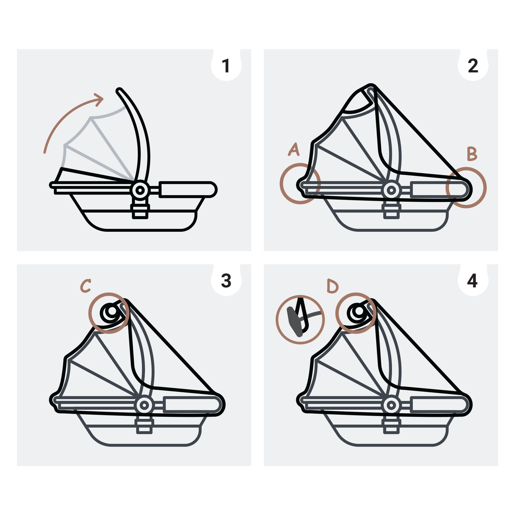 1. Așezați husa peste marsupiu sau scoică, acoperind complet copilul.