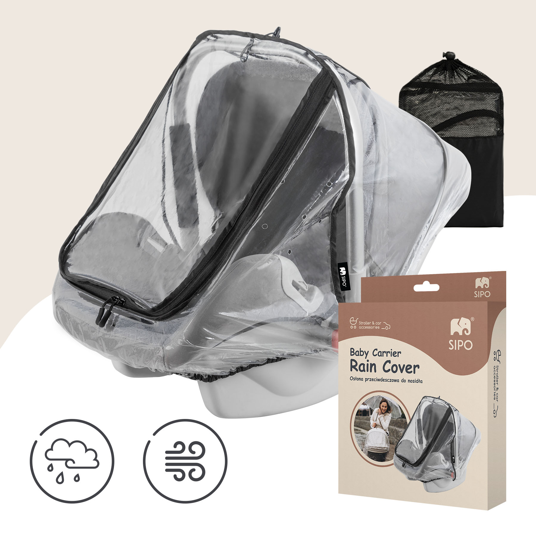 Husa de ploaie SIPO este realizată din material EVA flexibil, fără PVC și fără miros, rezistent la umiditate și temperaturi scăzute. Oferă protecție completă pentru copil în timpul plimbărilor, fiind concepută pentru utilizarea cu marsupii și scoici auto.