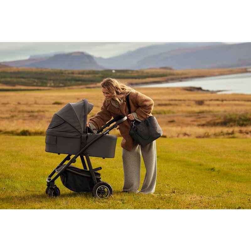Materialele premium mentin caruciorul elegant si usor de intretinut. Sunt impermeabile, rezistente la uzura si protejate impotriva decolorarii. Copertina este prevazuta cu strat UPF+ pentru protectie solara, fara a necesita captuseli suplimentare.