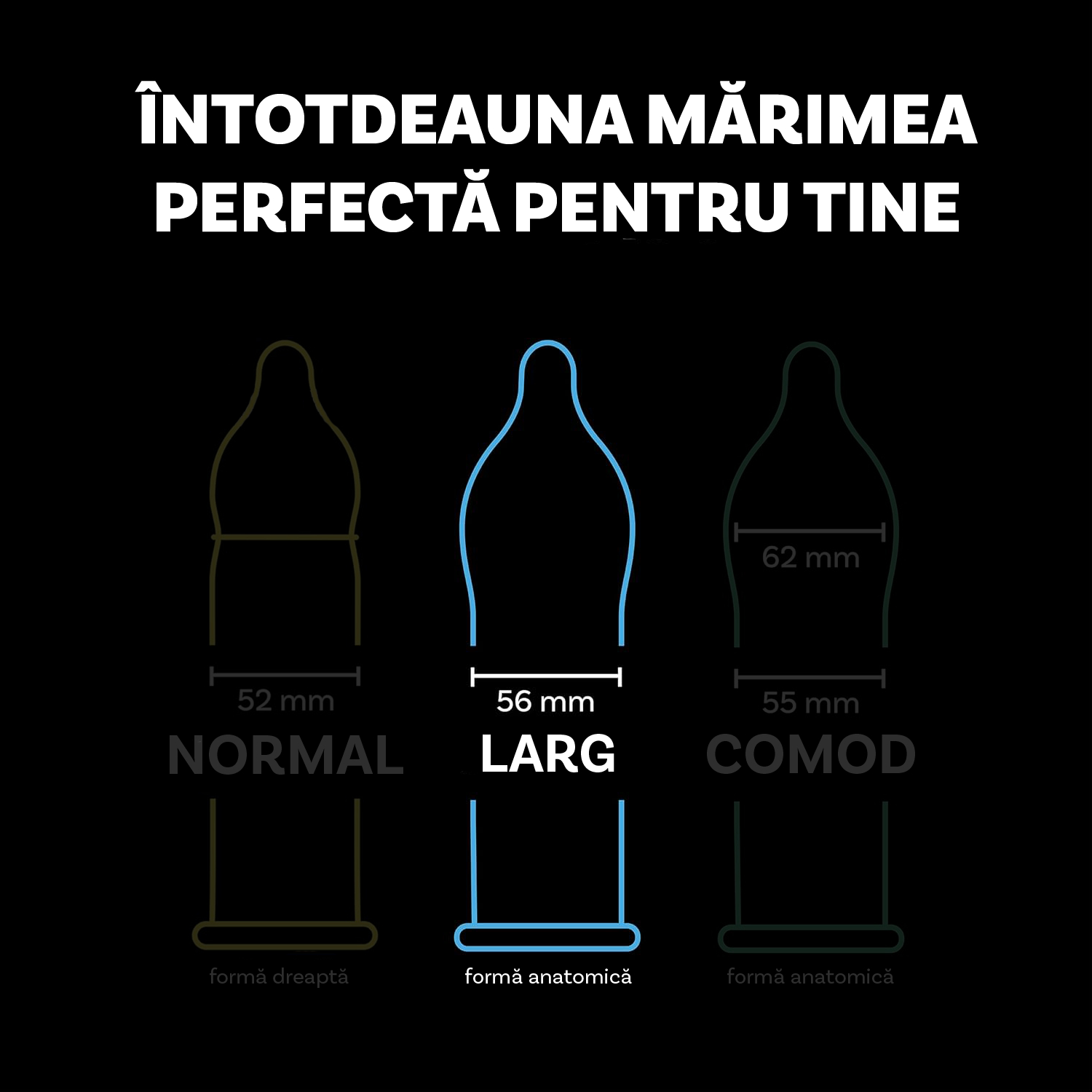 Realizate din latex natural, cu lubrifiant si rezervor, prezervativele au latimea nominala de 56 mm, forma anatomica si un parfum placut.