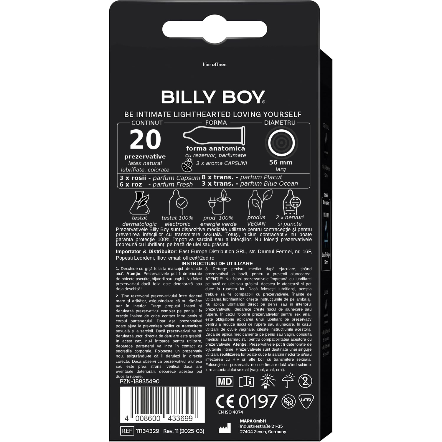 In cutia mixa vei gasi prezervativele senzuale Billy Boy in culori delicate, parfumuri variate si arome fructate. .