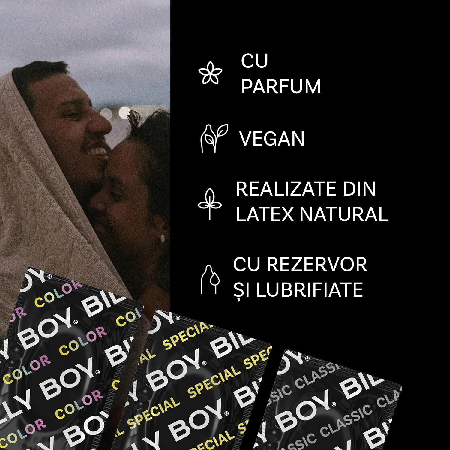 Prezervativele trebuie tratate cu grija. Va rugam sa respectati data de expirare indicata pe ambalaj si pe pliculetele sigilate dupa expirare, prezervativul nu mai trebuie utilizat! Pastrati prezervativele intr-un loc racoros si uscat, ferite de caldura si de lumina directa a soarelui. Prezervativele nu intervin in organism si nu produc efecte secundare. Totusi, pot aparea intolerante sub forma unor reactii alergice (de exemplu, alergie la latex), pana la soc anafilactic. In cazul aparitiei unor disconforturi sau iritatii, intrerupeti imediat utilizarea prezervativului si consultati un medic. Fiecare prezervativ este testat electronic individual. Folosite corect, prezervativele BILLY BOY ofera protectie impotriva sarcinii si a transmiterii agentilor patogeni. Niciun mijloc contraceptiv nu poate garanta 100% protectia impotriva sarcinii sau a bolilor infectioase. In cazul in care prezervativul se rupe sau se sparge in timpul utilizarii, adresati-va unui medic cat mai curand posibil, dar nu mai tarziu de 72 de ore.